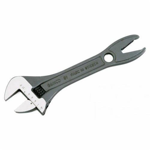Bahco Alligator Adjustable Wrench, Industrial Grade, 1-1/4 in Wrench Opening, 8 in Overall Length, 1/2 in Jaw Thickness, Plain Grip, Steel Body, Yes Measurement Scale Included, Steel, Black Phosphate