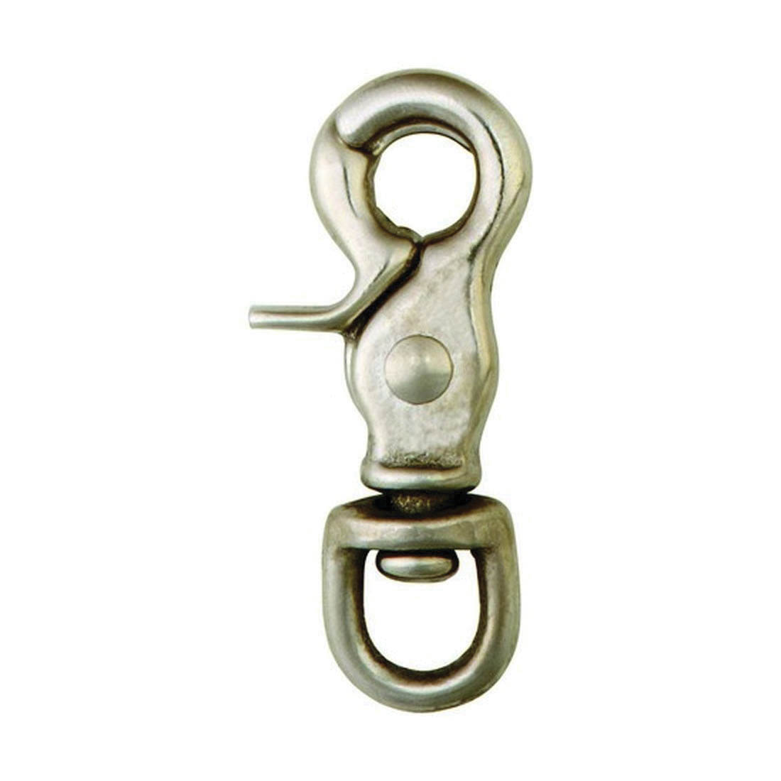 Campbell T7607502 Round Swiveling Eye Trigger Snap, 3/8 in, 2-1/2 in OAL, 3/8 in ID Eye, 70 lb Load, Nickel Plated