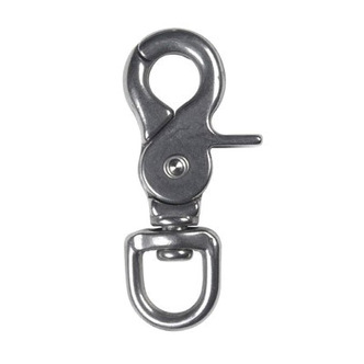 Campbell Eye Trigger Snap, Round Swiveling, 1/2 in, 2-15/32 in Overall Length, 1/2 in Eye ID, 80 lb, 7/16 in Snap Opening, 316 Stainless Steel, Polished