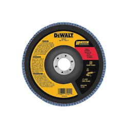 DeWALT HP Coated Abrasive Flap Disc, Contaminant-Free High Performance, 5 in Disc Dia, 7/8 in Center Hole, 120 Grit, Fine Grade, Zirconia Alumina Abrasive, Type 27 Disc, Fiberglass Backing, 12200 rpm Maximum, Black/Yellow