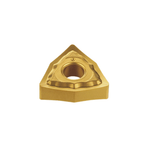 - Double-sided trigon inserts with a positive rake angle and sharp, positive radial edge