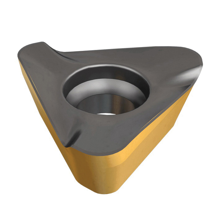 - Triangular inserts with 3 helical cutting edges for 90deg shoulder accuracy