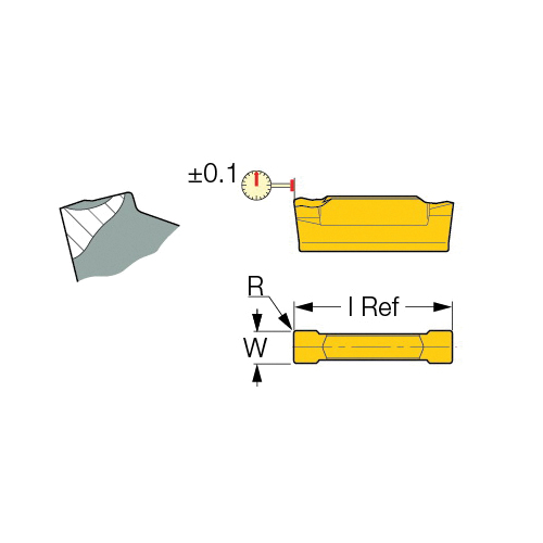 Iscar Parting Insert, Series: DO-GRIP, HGN Insert, 3003C Insert, 3 mm Cutting Width, 0 deg Lead Angle, Neutral Lead Angle Direction, Rectangle Shape, 3 mm Width, 15.8 mm Length, C Chipbreaker, 0.3 mm Corner Radius, Manufacturers Grade: IC328, ISO Code: HGN 3003C IC328, 90 deg Included Angle, Neutral Hand of Insert, Carbide, PVD Coated, Material Grade: M, P, S