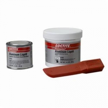 Loctite Fixmaster Aluminum Liquid, 2-Part Pourable, Series: PC 3466, Kit Container, 1 lb Container, Epoxy Base, Composition: Part A: Aluminum, Epoxy Resin, Neopentyl Glycol Diglycidyl Ether, Gamma-Glycidoxypropyl Trimethoxysilane; Part B: Triethylenetetramine, Amine Adduct, Substituted Piperazine, Nonylphenol, Amine Reacted Fatty Acid, Aliphatic Amine, Diethylenetriamine, 4,4-Isopropylidenediphenol, Tetraethylene Pentamine, 20 min Work Life, 6 hr Curing, Blue/Gray, 200 deg F, 5:1 Part A: /9:1 Part B Mixing Ratio, <10 g/L VOC, For Use On: Metal