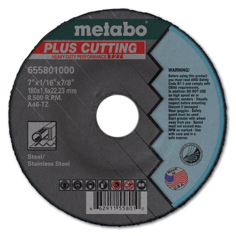 metabo 655801000 Plus Cutting General Purpose Depressed Center Wheel, 7 in Dia x 1/16 in THK, 7/8 in Center Hole, A46TZ Grit, Aluminum Oxide Abrasive