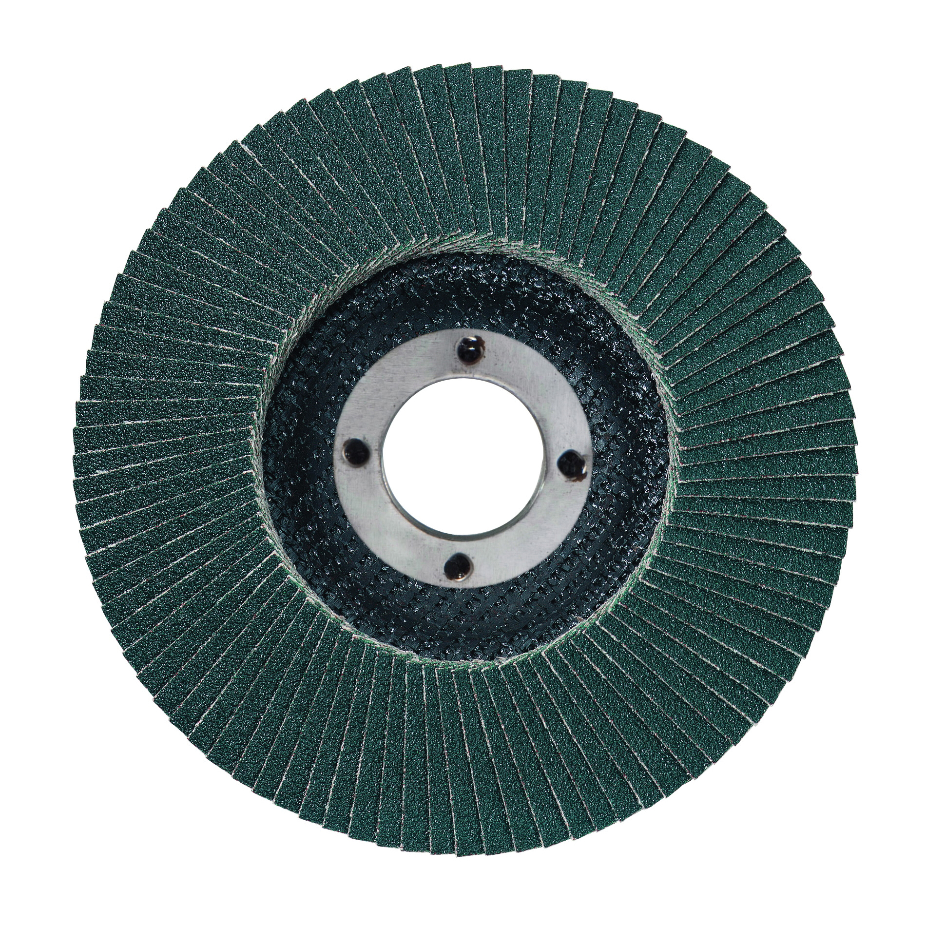 metabo Flexiamant Coated Abrasive Flap Disc, Contaminant-Free High Density, 4-1/2 in Disc Dia, 7/8 in Center Hole, P40 Grit, Coarse Grade, Zirconia Alumina Abrasive, Type 27 Flat Disc, Fiberglass Backing, 13300 rpm Maximum