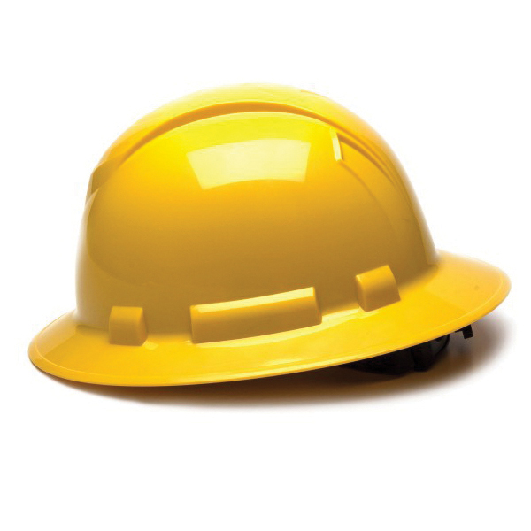 Pyramex Hard Hat, Full Brim, Series: Ridgeline, Standard Size, Fits Minimum Hat Size: SZ 6-1/2, Fits Maximum Hat Size: SZ 8, Yellow, ABS, 4-Point Suspension, ANSI Electrical Class Rating: Class C, E and G, ANSI Impact Rating: Type I, Graphics: TSC Safe and Sound Logo, Ratchet Adjustment