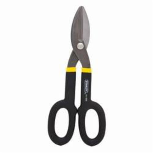 Stanley MaxSteel Tinner Snip, All Purpose Long Cut, Cutting Capacity: 25 ga Cold Rolled Steel, 28 ga Stainless Steel, 2-5/16 in Length of Cut, Straight/Wide Curve Snip Type, 10 in Overall Length, Serrated Blade, Steel Blade, Double Cushioned Grip, ANSI Specified Specifications Met