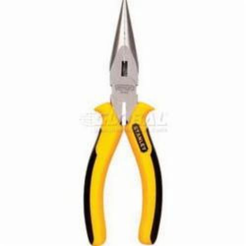 Stanley, 84-031, Long Nose Plier, 14 AWG Nominal, 2-15/64 in Jaw Length, 13/16 in Jaw Width, 1-1/4 in Jaw Opening, 0 deg Jaw Bend, Forged Steel Jaw, 27/64 in Tip Width, 7 in Overall Length, Cutter Included: Yes, Non-Sparking: No, Ergonomic Handle, Plastic Handle, Black/Yellow, Applicable Materials: Copper Wire
