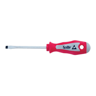 Xcelite Screwdriver, Series: Pro Series, Measurement System: Imperial, Slotted Point, 1/8 in Point, 6-5/8 in Overall Length, Round Shank, 4 in Shank Length, Molybdenum Steel Shank, Yes ESD-Safe, Ergonomic Handle, Plastic Handle, Molybdenum Steel, Polished Chrome/Satin, Red/Gray