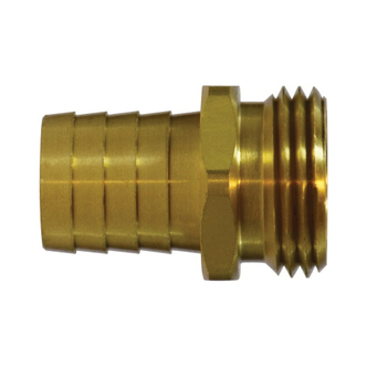 Midland Industries Hose Swivel Adapter, Short Shank, Adapter, 3/4 in Nominal, Barb x MGH, 1.06 in Hex, 75 psi, 35 to 100 deg F, Brass, 1.56 in L, Import