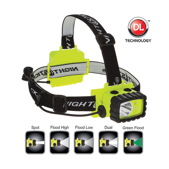 NightStick Dual-Light XPP-5458G Intrinsically Safe Waterproof Headlamp, LED Bulb, Polymer Housing, 130 Lumens Spotlight/100/25/21 Lumens Floodlight/190 Lumens Dual-Light Lumens