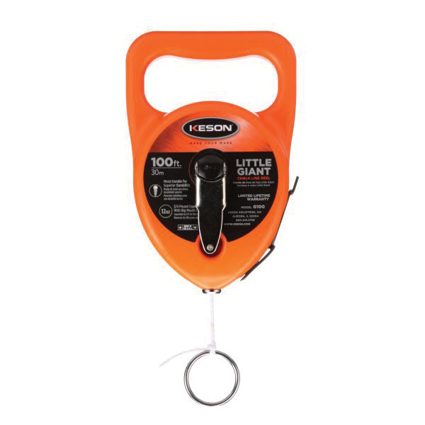 KESON Chalk Line Reel, Series: Little Gaint, 100 ft Line Length, 12 oz Chalk, Big Mouth Door, 1x1 Rewind Retraction, Steel Pull Ring Hook, 1:1 Gear Ratio, ABS Case, Orange Case, 2 mm W Dimensions