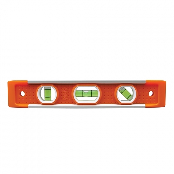 • Torpedo level has large, easy-to-read high-visibility vials at 3 angles, level, 90 and 45 deg