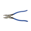 Klein Linemans Plier, Heavy Duty, Series: 2000, 1-3/8 in Nominal Capacity, High Leverage Jaw, 1-19/32 in L x 1-1/4 in W x 5/8 in THK Jaw, Steel Jaw, Crosshatch Knurled Jaw Surface, 9.33 in Overall Length, No Wire Stripper, Yes Side Cutter, 7-3/8 in Handle Length, Plastic Handle, Dipped Grip, Black Oxide, Light Blue, Applicable Materials: ACSR