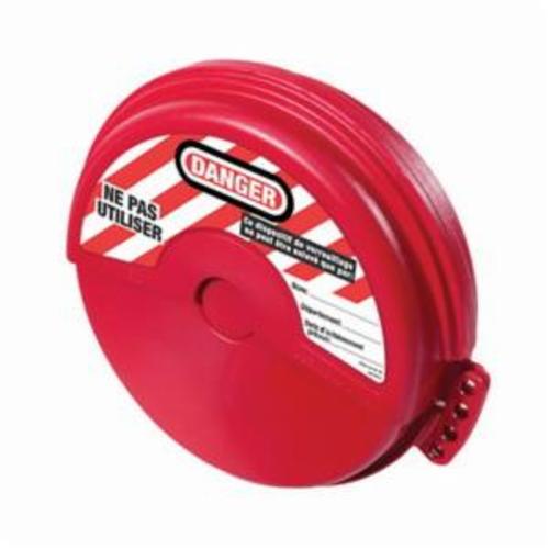 Master Lock Gate Valve Lockout, Rotating, 4 in Fits Minimum Handle Size, 6-1/2 in Fits Maximum Handle Size, 4 Padlocks Maximum, 5/16 in Padlock Shackle Maximum Diameter, Danger Do Not Operate Legend, Zenez Thermoplastic, Red, -50 deg F Minimum Temperature, 350 deg F Maximum
