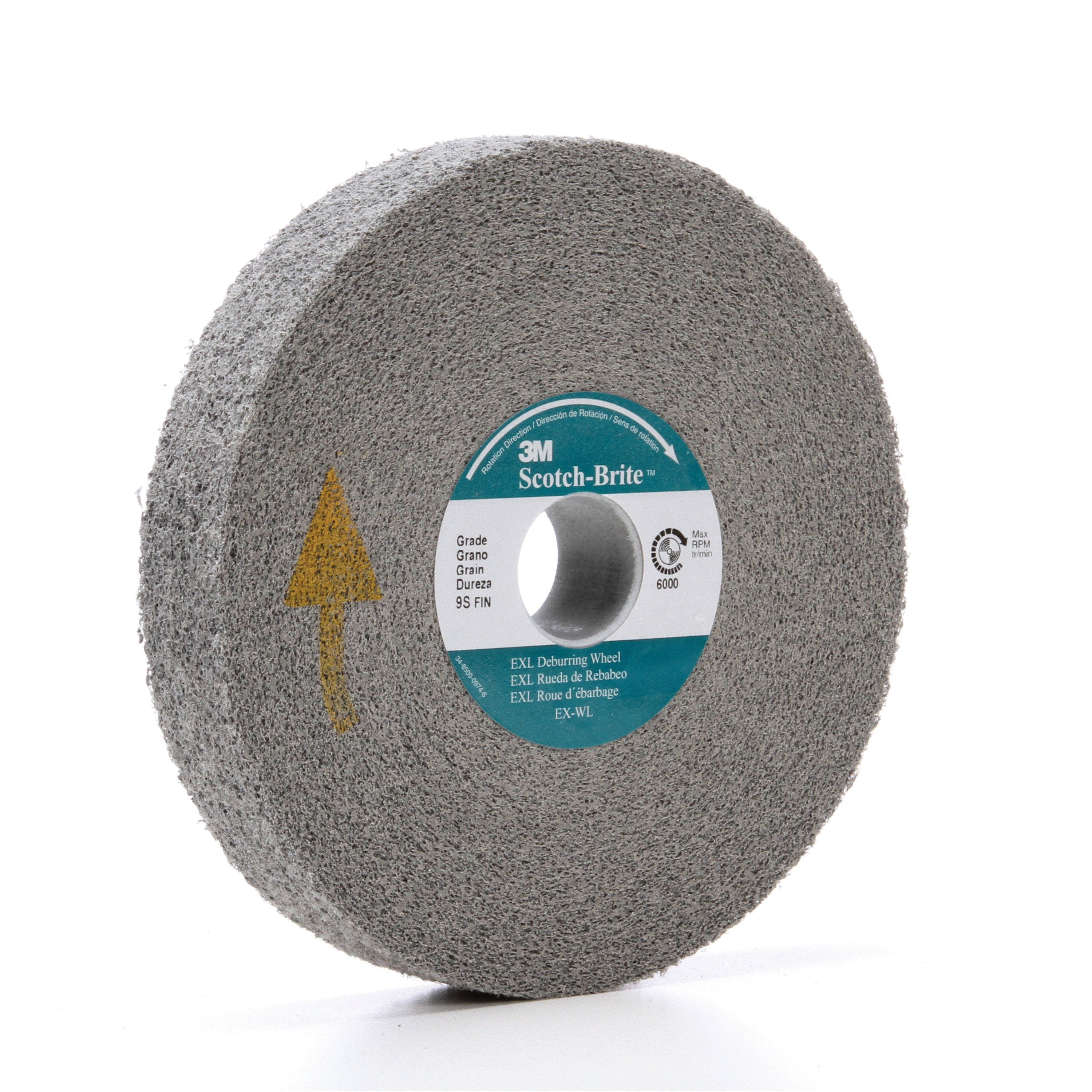 3M, 7000000737, Deburring Wheel, High Performance, Series: EXL, Center Hole Attachment, Silicon Carbide Abrasive, 6 in Wheel Diameter, 1 in Center Hole, 1 in Face Width, Fine Grade, 6000 rpm Maximum, Density Grade: Hard, 9 Density, Gray