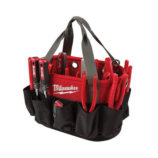 Milwaukee Underground Oval Bag, 14.57 in L x 8.27 in W x 10.43 in H Outside, 1680D Ballistic, Black/Red/Gray, 24 Divider Slots