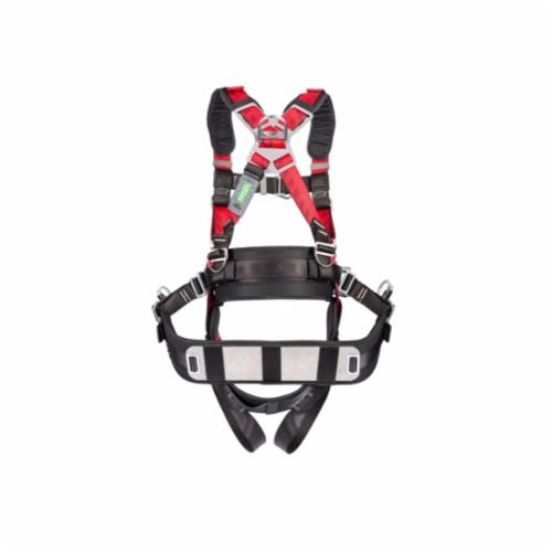 MSA 10041599 Harness, Standard, 400 lb Load, PTFE Fabric Webbing Strap, Tongue Leg Strap Buckle, Qwik-Fit Chest Strap Buckle, Padding Shoulder Strap Buckle, Stamped/Forged Alloy Steel Hardware, Red