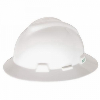 V-Gard® Hard Hat, Full Brim, Standard, SZ 6-1/2 to 8 Fits Minimum Hat Size, White, Polyethylene, 4-Point Fas-Trac® III Suspension, Class E ANSI Electrical Class Rating, Type 1 ANSI Impact Rating, Yes Slotted, Ratchet Adjustment
