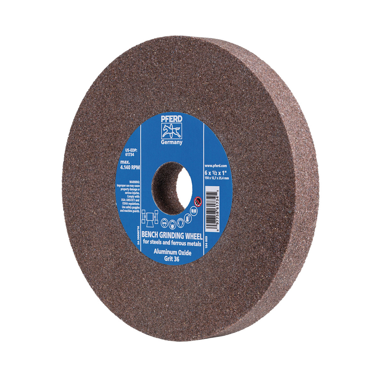 SAIT Bench Grinding Wheel, General Purpose, 8 in Wheel Dia, 1 in Wheel Thickness, 1 in Center Hole, 80 Grit, Medium Grade, Aluminum Oxide Abrasive, 3600 rpm Maximum, Vitrified Bond, Brown Wheel, Applicable Materials: Ferrous Metals, Carbon Steel, Steel, Iron and Forgings, Wheel Type Number: Type 1