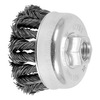 PFERD Cup Brush, External Nut Heavy Duty Minigrinder Single Row, 3-1/2 in Brush Dia, 5/8-11 Arbor Hole Size, Standard/Twist Knot Filament/Wire Type, 0.02 in Filament/Wire Diameter, Carbon Steel Fill, 7/8 in Trim Length, 12500 rpm Maximum