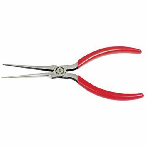 Proto Needle Nose Plier, Extra Long Thin, Serrated Jaw, 2-5/32 in Jaw Length, 1/2 in Jaw Width, 1-1/4 in Jaw Opening, Steel Jaw, 9/32 in Tip Width, 6-5/32 in Overall Length, Cutter Included: No, Non-Sparking: No, Wire Stripper Included: No, Plastisol Handle, Red