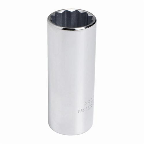 Proto TorquePlus Socket, Deep Length, No Impact Rated, Measurement System: Imperial, Square Drive, 3/8 in Drive, 7/8 in Socket, 2-3/4 in Overall Length, 1-15/64 in Opening Depth, 1-15/64 in Drive End Width, 1-15/64 in Socket End Width, Ball Locking, 12 Points, 2-5/16 in Bolt Clearance Depth, Alloy Steel, Full Polished