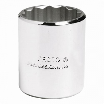 Proto TorquePlus Socket, Standard Length, No Impact Rated, Measurement System: Metric, Square Drive, 3/8 in Drive, 18 mm Socket, 30.1 mm Overall Length, 13.5 mm Opening Depth, 24.2 mm Drive End Width, 24.2 mm Socket End Width, Ball Locking, 12 Points, 12.6 mm Bolt Clearance Depth, Alloy Steel, Full Polished