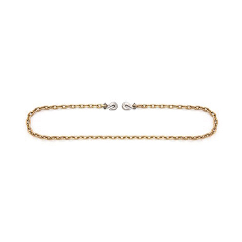 Campbell Binder Chain, Welded, Series: System 7, Single Loop/Straight Link, 70 Grade, 3/8 in, 20 ft Length, 6600 lb, Alloy Hook/Carbon Steel, Yellow Chromate/Electro-Plated Zinc/Bright
