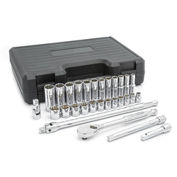 GEARWRENCH Mechanics Tool Set, Metric Standard, Specifications: 3/8 in Drive, 12-Point, 29 Piece, Blow Molded Case Tool Storage, Tool Storage Included: Yes, Specifications Met: ASME Specified, Alloy Steel, Polished Chrome