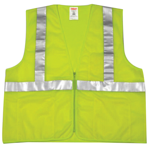Tingley Job Sight Safety Vest, Series: V70632, Unisex, Size S to M, Hi-Viz Yellow, Polyester Mesh, Silver Stripe, Zipper Closure, 4 Pockets, ANSI Class: Class 2, ANSI/ISEA 107-2015 Type R Specifications Met