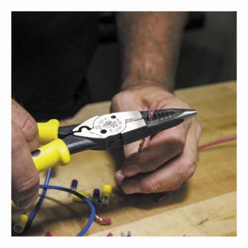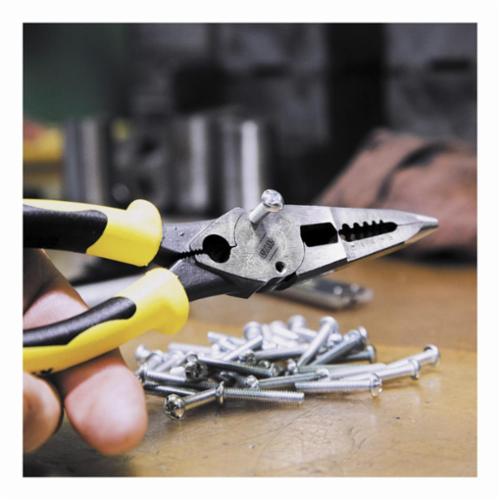 Klein® All-Purpose Plier, 8 to 18 AWG Solid/Stranded Nominal Capacity, 2.188 in Jaw Length, 1 in Jaw Width, 1 in Jaw Opening, Steel Jaw, 8-5/8 in Overall Length, 6 in Handle Length, Plastic Dipped Handle, Black/Yellow Handle