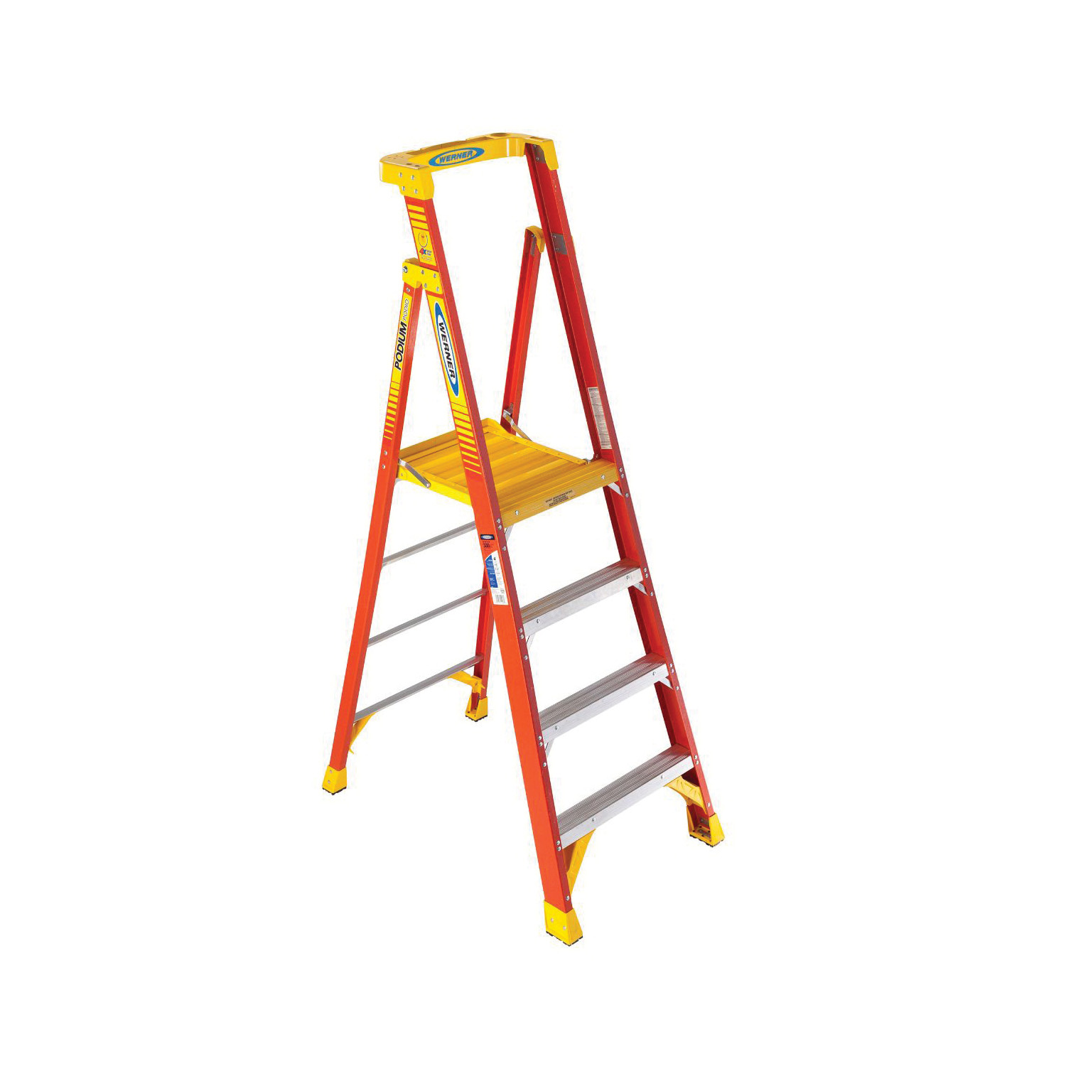 WERNER PD6204 PD6200 Podium Ladder, 6 ft Ladder, 300 lb Load, 4 Steps, Type IA, Fiberglass