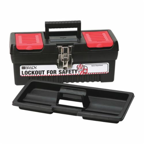 Brady Lockout Toolbox, Small Unfilled, Black/Red, Polypropylene/Steel, 7.1 in Height, 14 in Width, 5-1/2 in Depth, Legend: Lockout For Safety