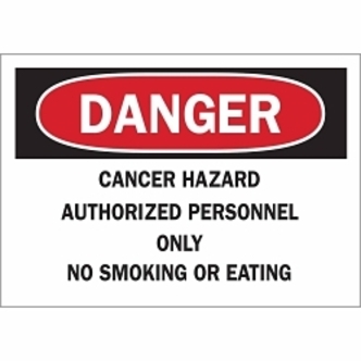 LegendCANCER HAZARD AUTHORIZED PERSONNEL ONLY NO SMOKING OR EATING