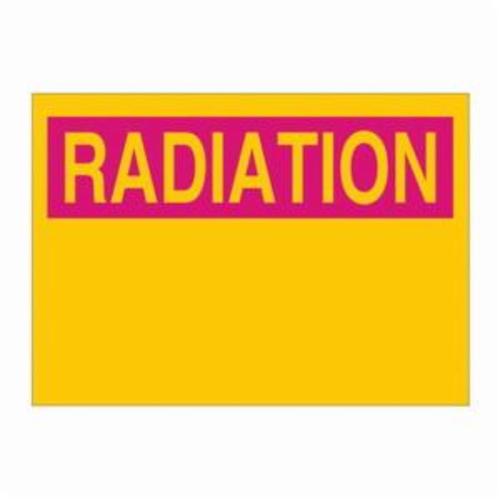 Brady Blank Sign, Light Duty Non-Laminated Pre-Printed Header Rectangular, Header: RADIATION, Text Legend, B-401 Polystyrene, 7 in Height, 10 in Width, Pink on Yellow Legend/Background