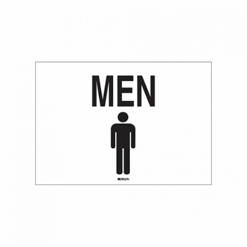 Brady Restroom Sign, Rectangular, Language: English, Symbol/Text Legend, Legend: MEN, B-401 Polystyrene, Corner Hole Mounting, 10 in Height, 14 in Width, Black on White Legend/Background
