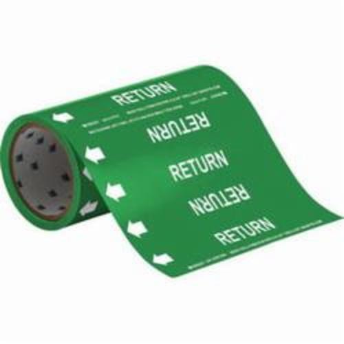Brady Pipe Marker, Permanent Acrylic, Legend: RETURN with Left Arrow Symbol, White on Green Legend/Background, 8 in Height, 8 in Width, B-946 Vinyl, Self-Adhesive Mounting, 65 Markers per Card