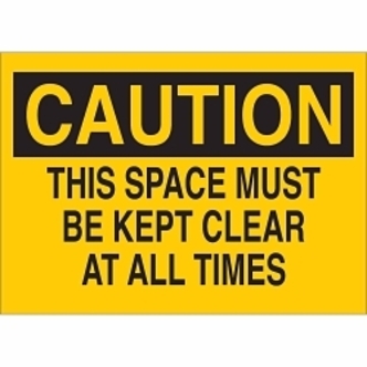 Brady Maintenance Sign, Rectangular, Language: English, Text Legend, Legend: CAUTION THIS SPACE MUST BE KEPT CLEAR AT ALL TIMES, B-120 Fiberglass, Corner Hole Mounting, 10 in Height, 14 in Width, Black on Yellow Legend/Background