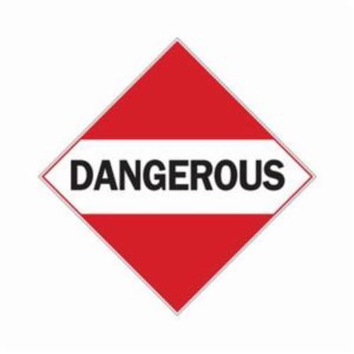 Brady DOT Vehicle Placard, Diamond, 10-3/4 in Width, 0.004 in Thickness, B-946 Vinyl, White Background, Legend: DANGEROUS, Black/Red Legend, Self-Adhesive Mounting