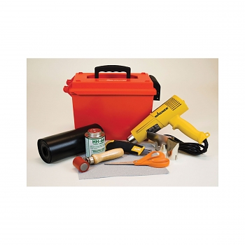 IncludesHeat Gun and Nozzle, Pressure Application Roller, Sand Paper, Scissors and Utility Knife, PVC Cement and 10 sq-ft Coated Fabric Repair Material