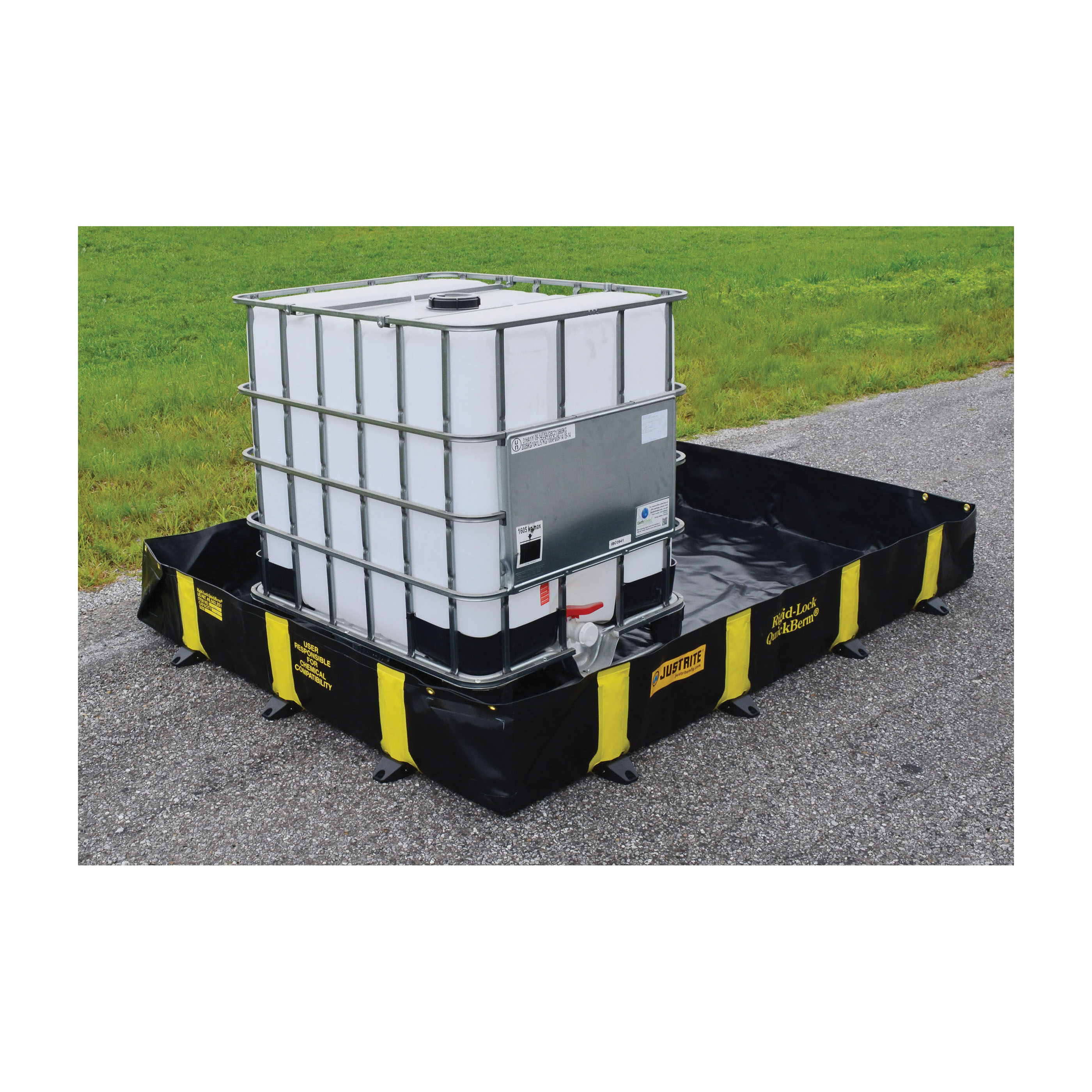 Justrite Spill Containment Berm, Series: Rigid-Lock QuickBerm, 355 gal Spill, 8 ft Length, 12 in Height, 6 ft Width, Modified PVC Coated Fabric, Black