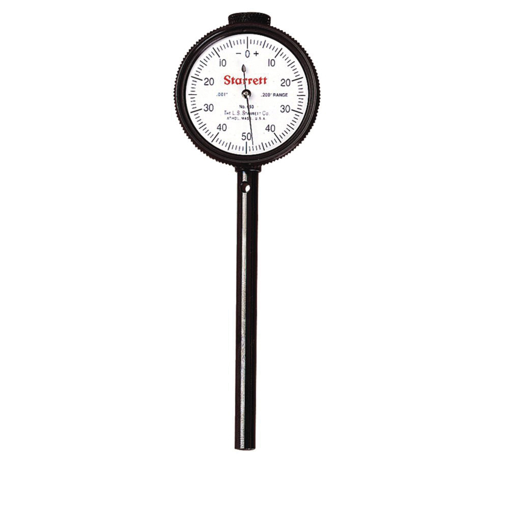 Starrett 650B5 650 Series Back Plunger Dial Indicator With Deep Hole Attachment, 0.2 in, 0 to 50 Dial Reading, 0.001 in, 1-11/16 in Dial