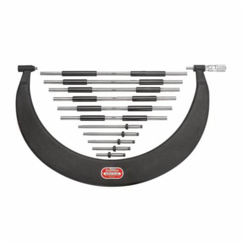 Starrett Outside Micrometer, Interchangeable Anvil Plain Tubular Bow, Series: 724, 12 to 18 in, +/-0.0003 in Accuracy, Graduations: 0.001 in, 0.001 in Resolution, Flat Anvil, Flat Spindle, 0.3 in Spindle Dia, Friction Thimble, Steel, Satin Chrome