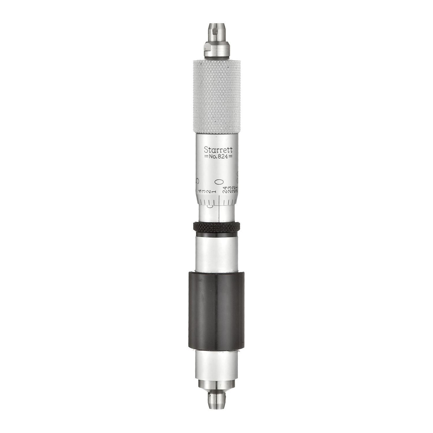 Starrett Inside Micrometer, Series: 824, 5 to 6 in, +/-0.0001 in Accuracy, Graduations: 0.001 in, 0.001 in Resolution, Fixed Anvil, Satin Chrome