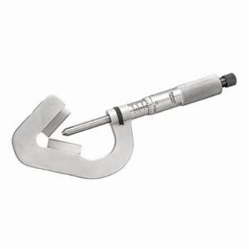 Starrett Micrometer, Mechanical, Series: 483, 0.093 to 1 in Measuring, +/-0.0001 in Accuracy, Graduations: 0.0001 in, 0.0001 in Resolution, V-Shape Anvil, Flat Spindle, 1/4 in Spindle Diameter, Ratchet Thimble, Drop Forged Steel, Satin Chrome, 39/64 in Dia x 6-45/64 in L Dimensions