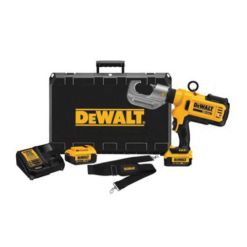 DeWALT Cable Crimping Tool Kit, U-Type Die, Bare Tool/Kit: Kit, Crimping Capacity: 750 kcmil Cu/Al, 12 ton Crimping Force, 20 VDC, Lithium-Ion Battery, 4 Ah Battery, Aluminum Housing, Pistol Grip Handle, 17-1/2 in L x 14 in H