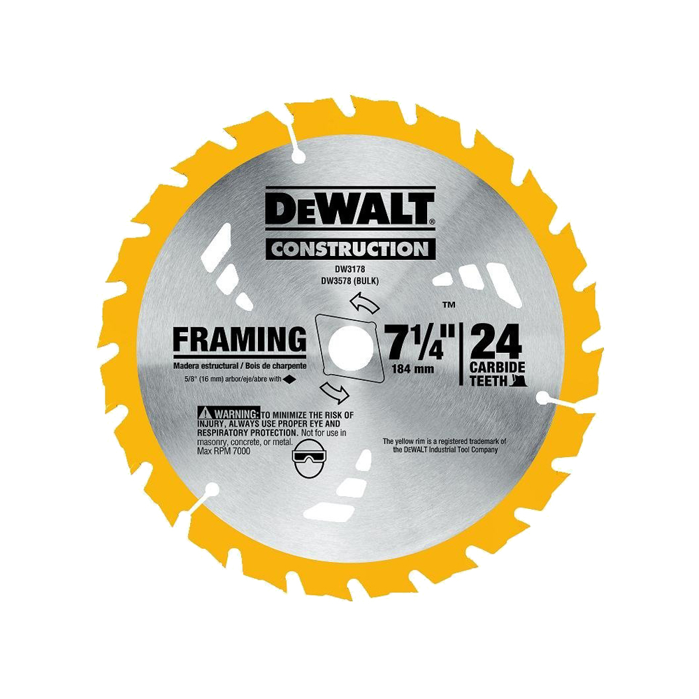 DeWALT Guaranteed Tough DW3178 Portable Small Diameter Thin Kerf Circular Saw Blade, 7-1/4 in Dia x 0.045 in THK, 5/8 in Arbor, Carbide Blade, 24 Teeth