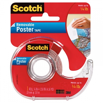 Scotch® Wallsaver™ Removable Poster Tape is a unique, double-coated mounting tape that securely mounts posters and lightweight objects on wood walls or doors, tile, glass, refrigerators, vinyl wallpaper or primed and painted walls. Holds firmly and removes easily. Comes in a handy, compact dispenser that fits nicely in a drawer.